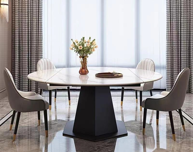 Model No: DT482048 ● Material Type - Mild Steel • Colours Available - All colours (PVDF & Powder Coated) • Material Finish - Matte & glossy ●Material Type - Stainless Steel • Colours Available - Gold, Rose Gold, Black (PVD Coated) • Material Finish - Matte & Glossy(mirror) ● Features & Characteristic - Durable, Sturdy, Strong, Stylish, Elegance & Long Life. ● Maintenance & Care - Easy to Maintain and Clean, wipe with dust free cotton cloth. Description: A cone base dining table is a type of dining table that features a cone-shaped base as its primary support structure. Unlike traditional dining tables with four legs or other base designs, a cone base dining table typically has a single cone-shaped support positioned at the center, providing stability and balance to the tabletop.