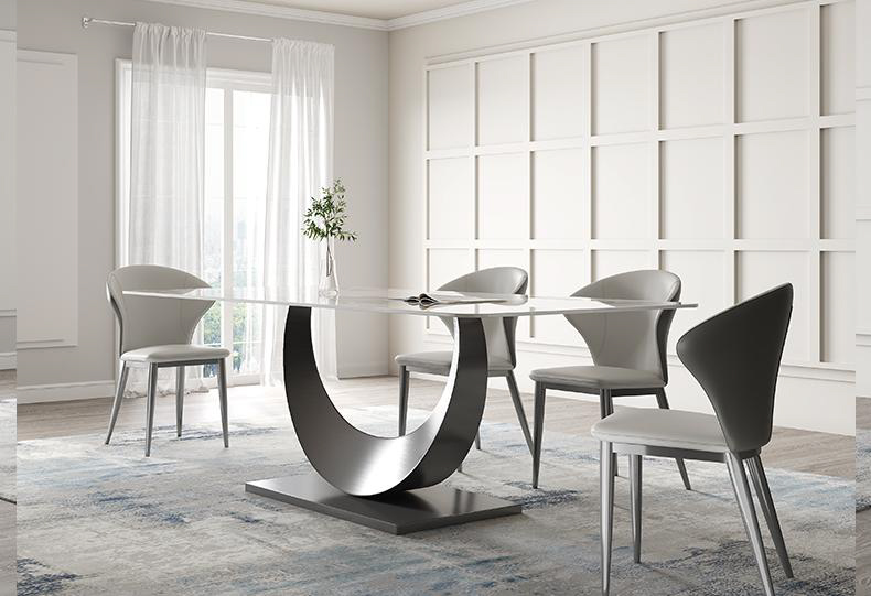 Model No: DT481688 ● Material Type - Mild Steel • Colours Available - All colours (PVDF & Powder Coated) • Material Finish - Matte & glossy ●Material Type - Stainless Steel • Colours Available - Gold, Rose Gold, Black (PVD Coated) • Material Finish - Matte & Glossy(mirror) ● Features & Characteristic - Durable, Sturdy, Strong, Stylish, Elegance & Long Life. ● Maintenance & Care - Easy to Maintain and Clean, wipe with dust free cotton cloth. Description: the base of the dining table would resemble the curved shape of a crescent moon,The curve of the base mimics the gentle arc of a crescent moon, creating a visually appealing and unique design element for the table.
